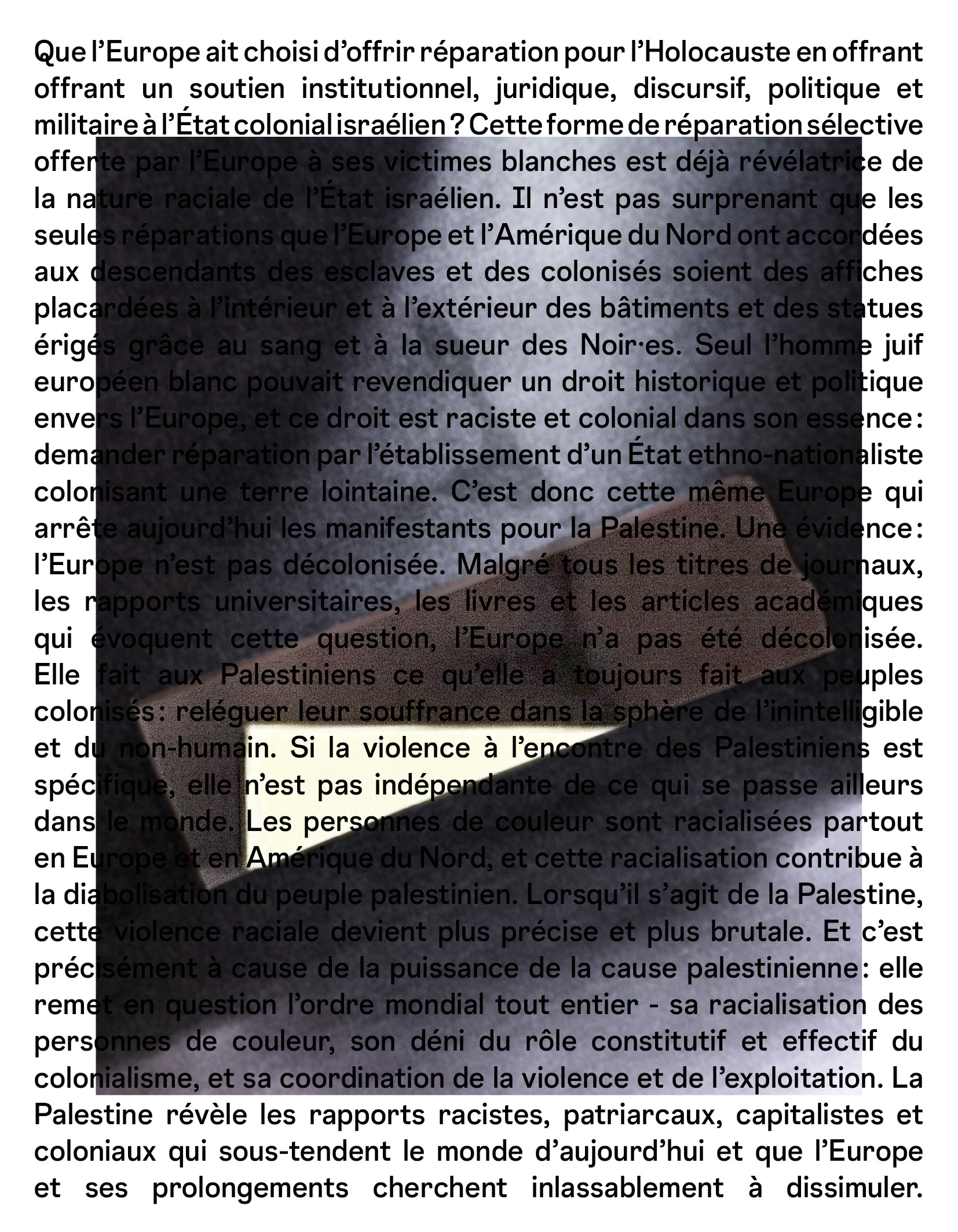 Suite à la soirée de soutien organisée le 25/04/24 à Zabriskie, le collectif LIMBO a continué la vente de poster en ligne jusqu’en juin 2024. Les posters étaient vendus à prix libre avec un prix conseillé de chf 15.